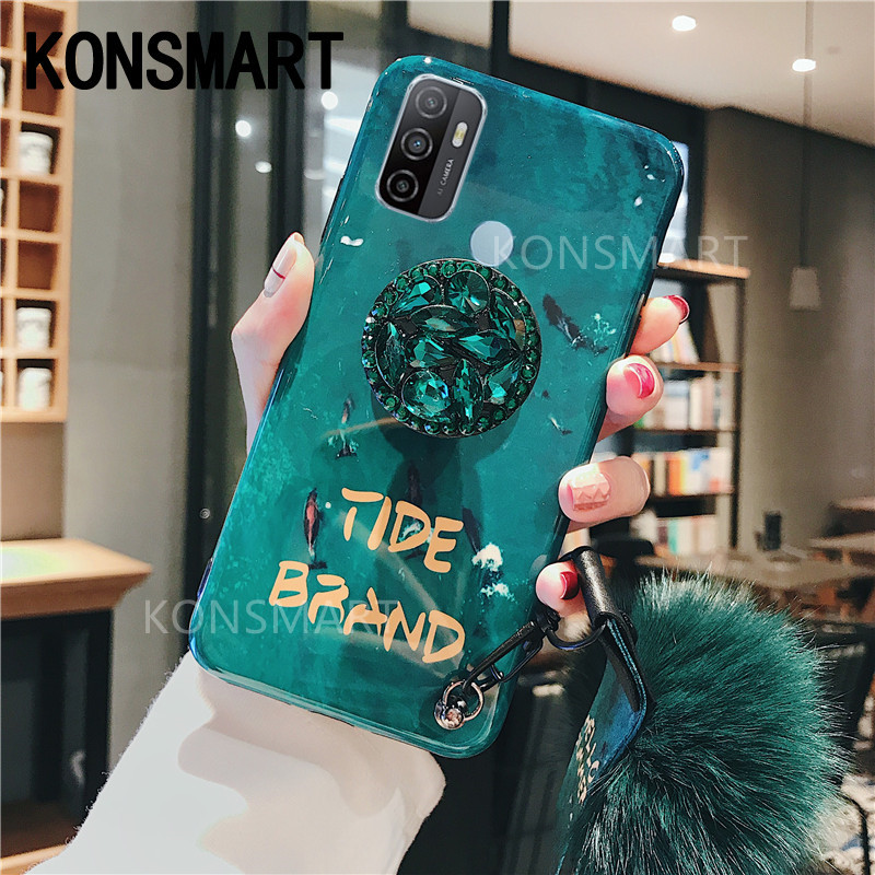 Case Bahan Silikon Plastik Aksen Holder Kristal Imitasi Dan Gantungan Bola Pompom Untuk Oppo A53 2020 Shopee Indonesia