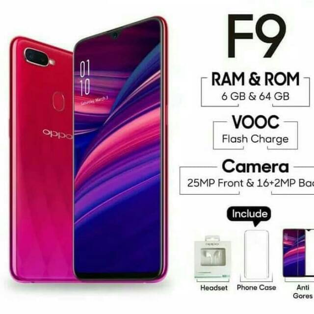 Belanja Sekarang Juga Hanya di Bukalapak. OPPO F9 - RAM 464 - UNIT ONLY - SECONDRp1300000. Oppo F9 adalah salah satu HP besutan Oppo yang juga mengusung RAM sebesar 6 GB dengan internal storage atau memori internal sebesar 64 GB.