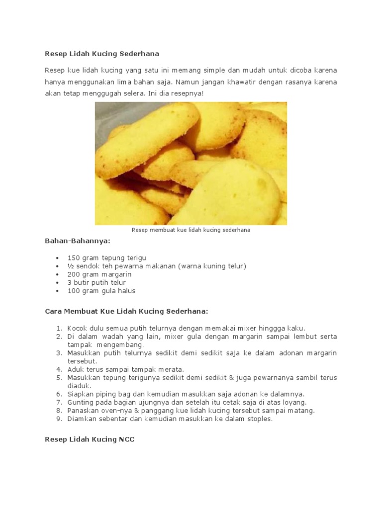 Biasanya sih setelah merasakan enaknya lidah kucing ini lupa deh sama kaastengels. 5 butir kuning telur kocok lepas. Resep Lidah Kucing NCC ala Fatmah Bahalwan.